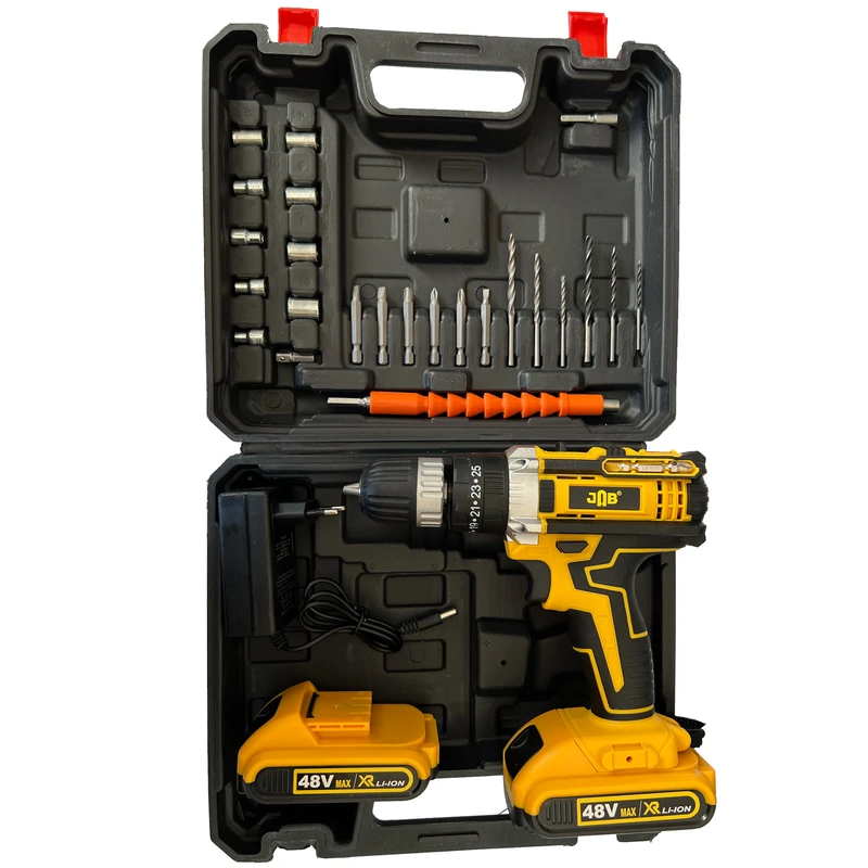دریل پیچگوشتی شارژی چکشی جاب مدل JB-4890 P نمونهای از ترکیب هوشمندانه قدرت، قابلیتهای کاربردی و طراحی متناسب با نیاز کاربران خانگی و حرفهای است. این ابزار با در اختیار داشتن ویژگیهای فنی پیشرفته مانند سیستم ضربهزن، کنترل سرعت، سهنظام فلزی، و بهرهگیری از باتری قدرتمند ۴۸ ولتی، خود را در میان محصولات سطح بالای بازار جای داده است. برخورداری از مجموعهای متنوع از اقلام همراه، این مدل را به ابزاری کامل و آماده برای انجام طیف وسیعی از فعالیتهای فنی تبدیل کرده است. در ادامه، به بررسی دقیق این دریل خواهیم پرداخت.